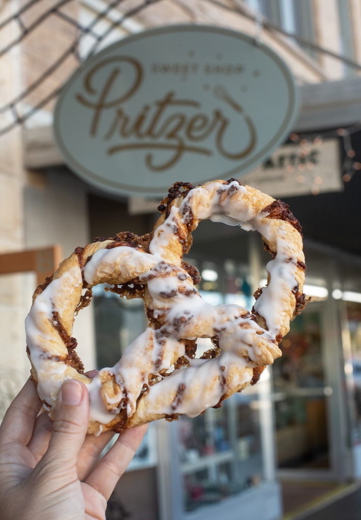 Near downtown, Navajo Grill has an enormous, covered patio that offers outdoor dining anytime of year. The menu features sophisticated Hill Country classics paired with craft cocktails and an extensive wine list. (We’re still dreaming about the stuffed quail.)And, for dessert, there are sweet spots scattered throughout the heart of Fredericksburg main drag. Grab a famous pastry-like German pretzel from Pritzer Sweet Shop to-go as you wander